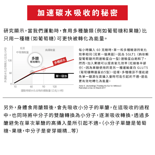 ・五大複合型碳水:易消化,吸收效率更佳,進而提供穩定持久的能量供應。