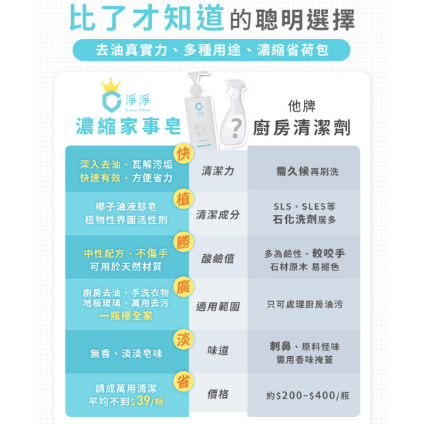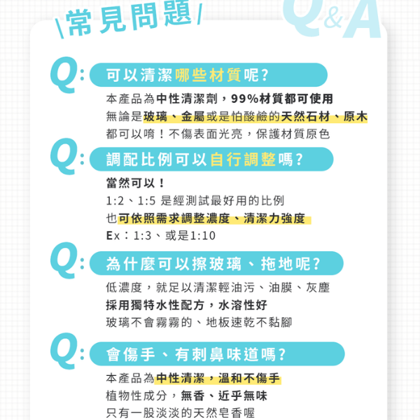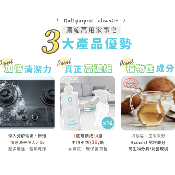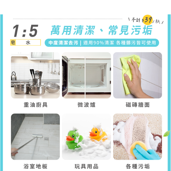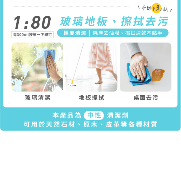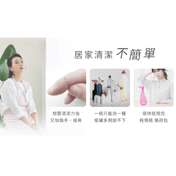 - 高濃度配方可依髒污程度自由調配比例,高效清潔省荷包!