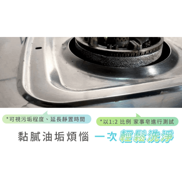 - 強效清潔陳年油垢、水垢、衣物汗漬等各種髒污,一瓶搞定。