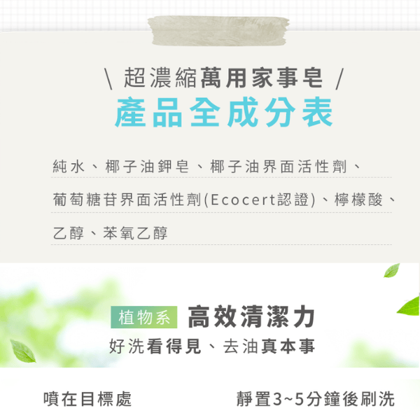 - 採用植物性來源成分,環保友善環境,安心不傷手。